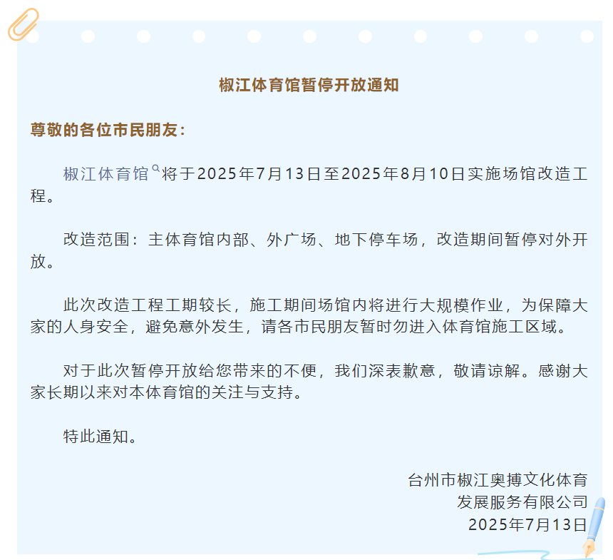 2025浙江省城市篮球联赛·城市争霸赛(简称“浙BA”),将于2025年8月至2026年2月燃情开战。台州联队跟台州湾新区队将参赛并提供场地!这不,已经确定在椒江体育馆举行了。椒江体育馆有能容纳3000座位的室内体育馆,露天50M标准游泳池,四片露天篮球场,两片钢架结构风雨篮球场,24小时开放的能容纳200多个车位地下停车场及3000多平方的室外广场。